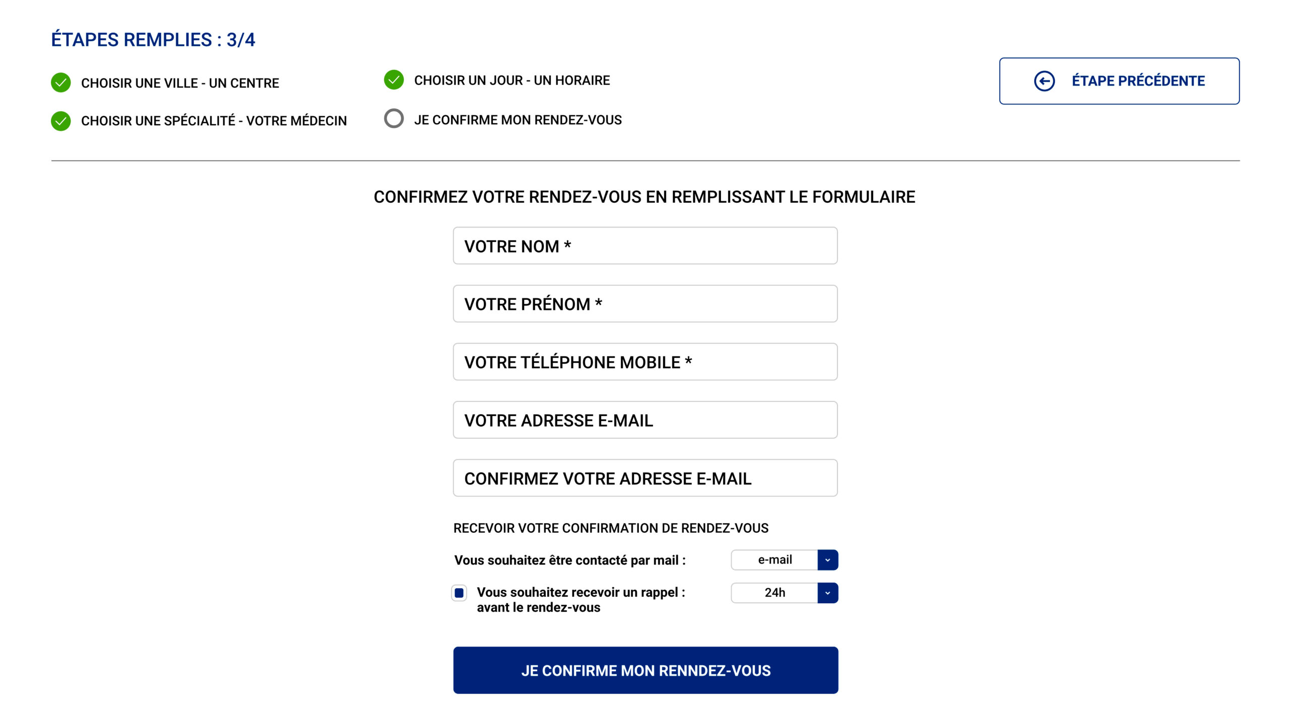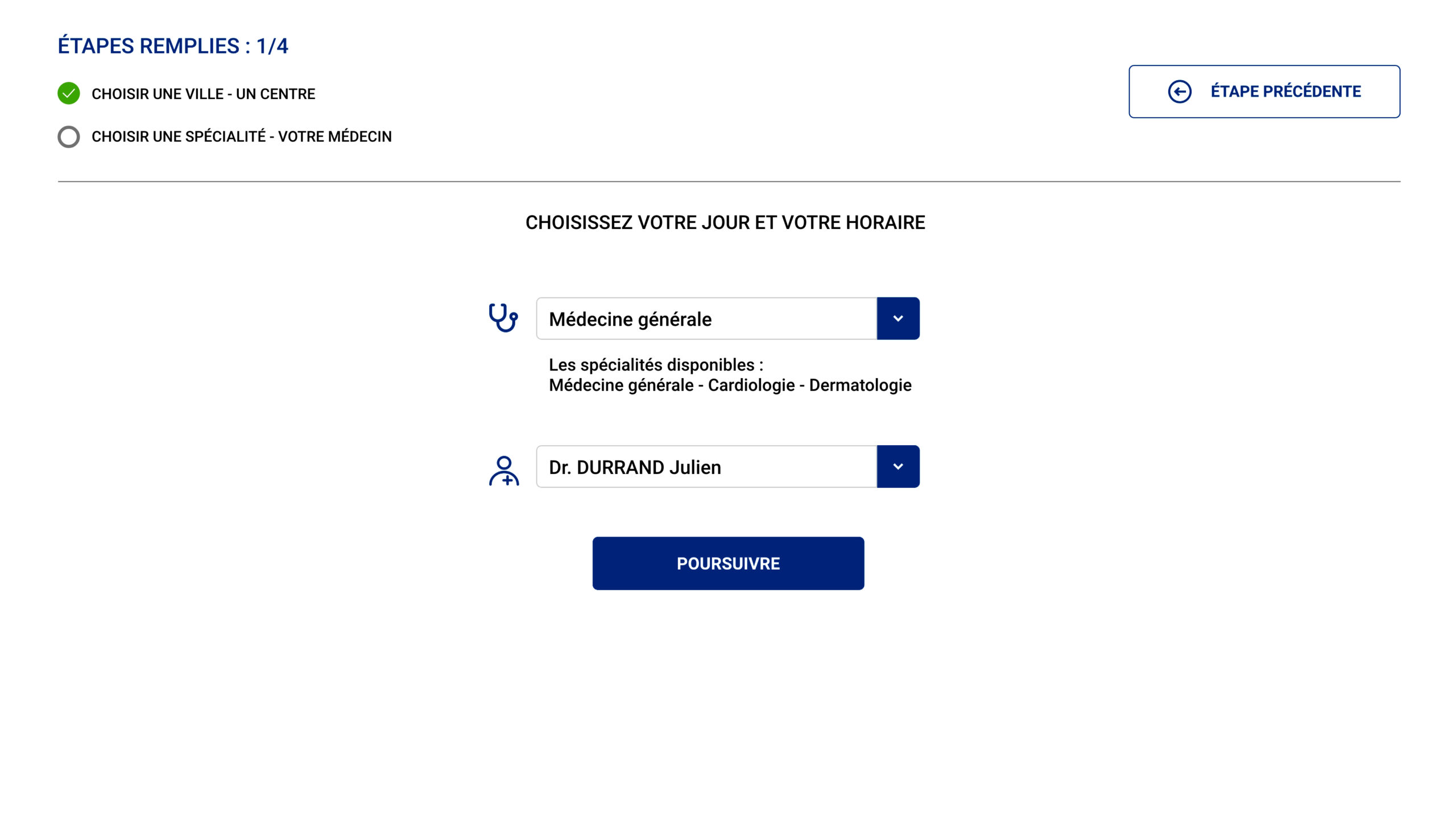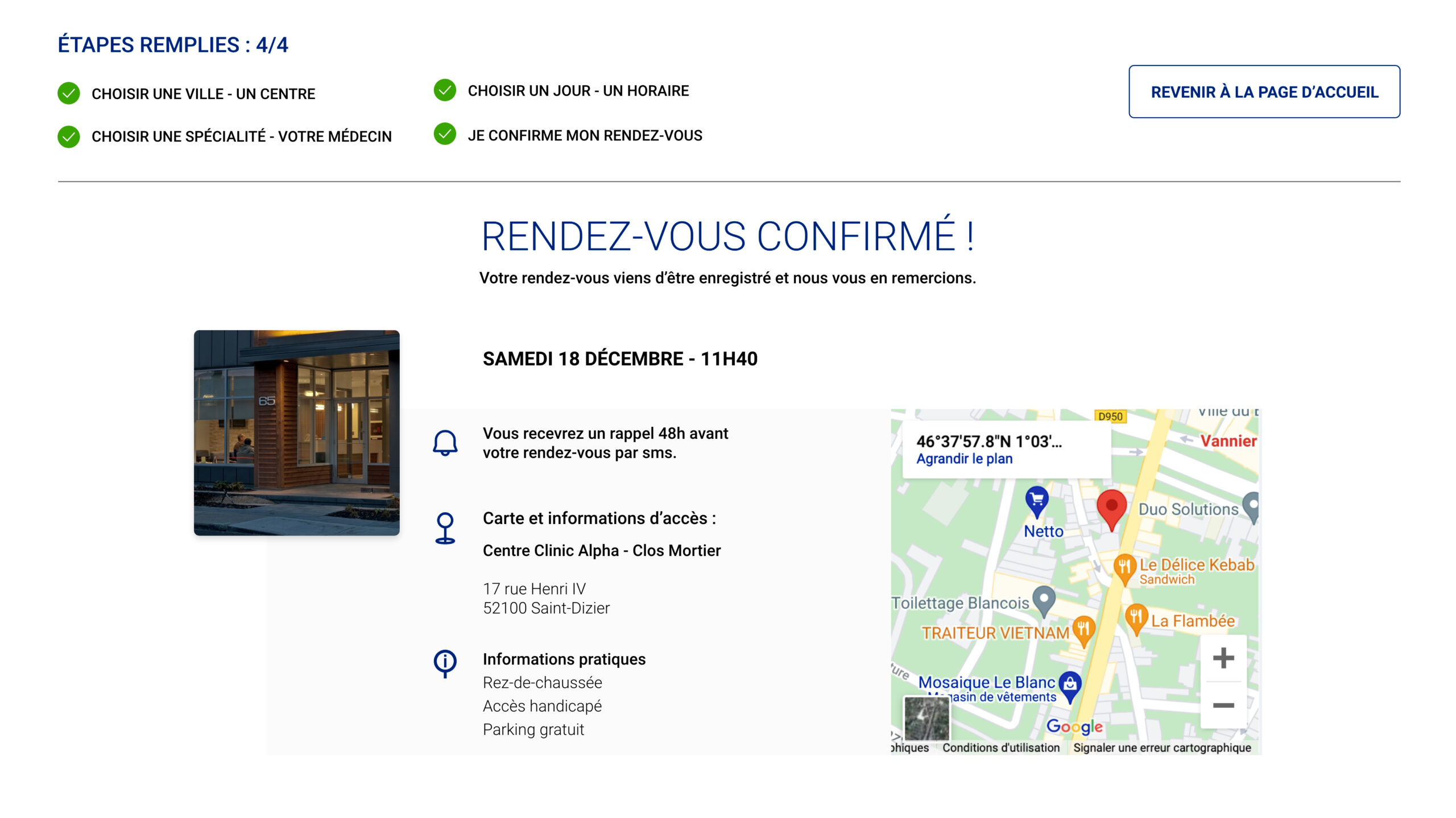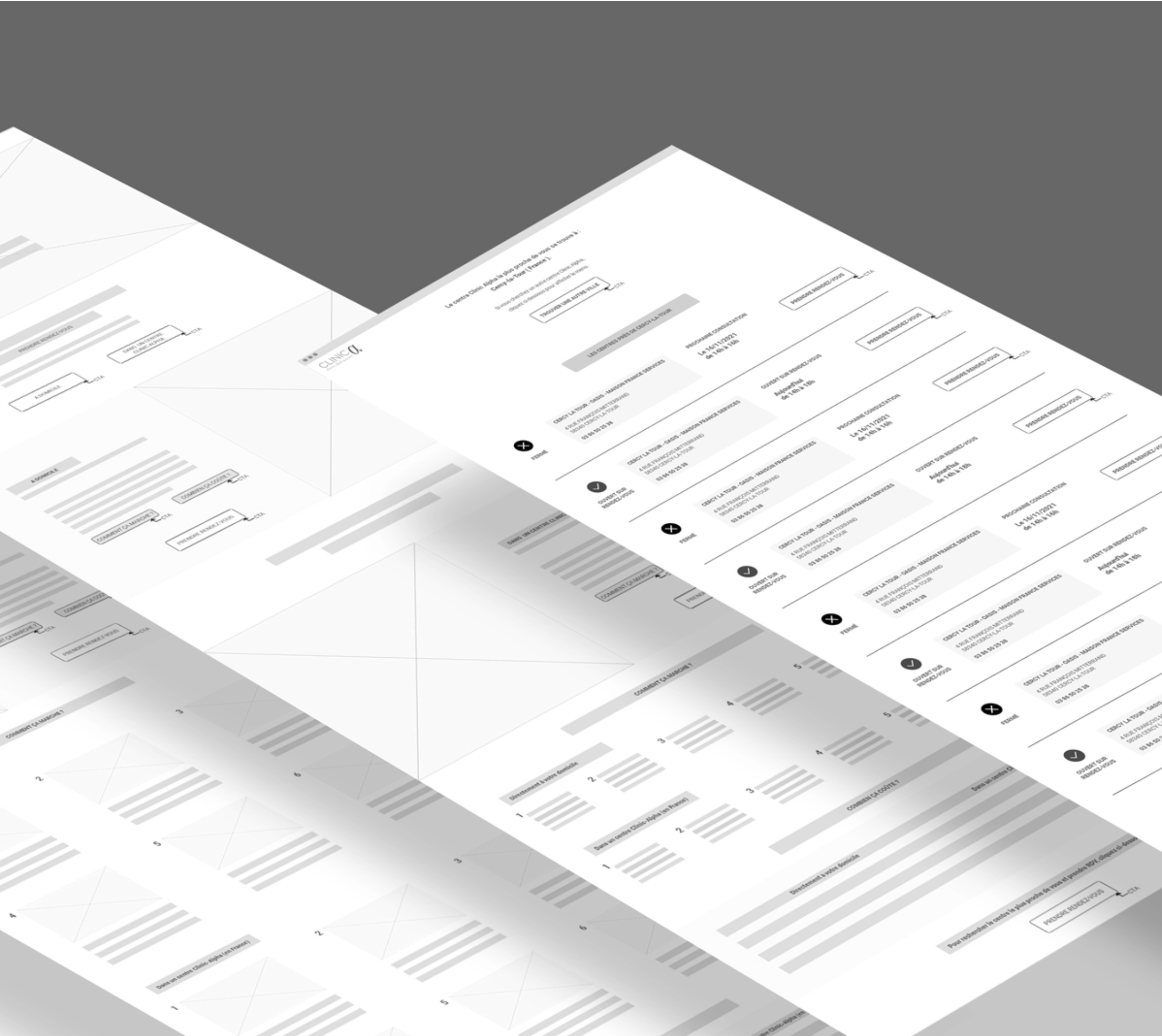 A cette étape nombreux wireframes ont été exécutés aMn de permettre de prendre un rendez-vous à domicile ou directement dans un centre Clinic-Alpha et ainsi bénéMcier d’une téléconsultation complète avec un médecin traitant, un médecin spécialiste, ou un autre médecin en cas d’indisponibilité du médecin traitant