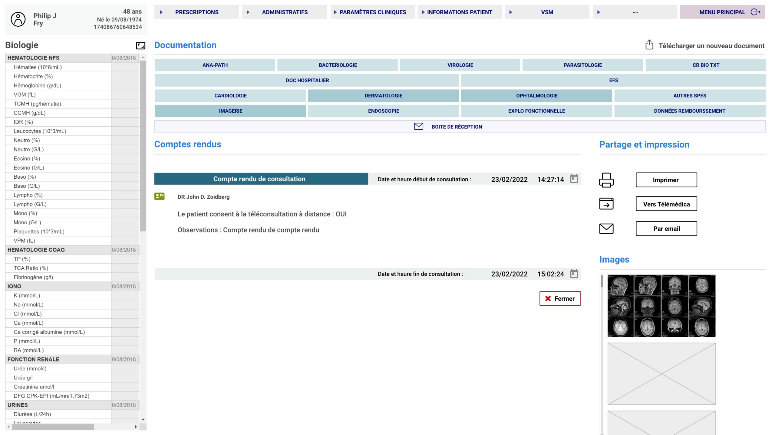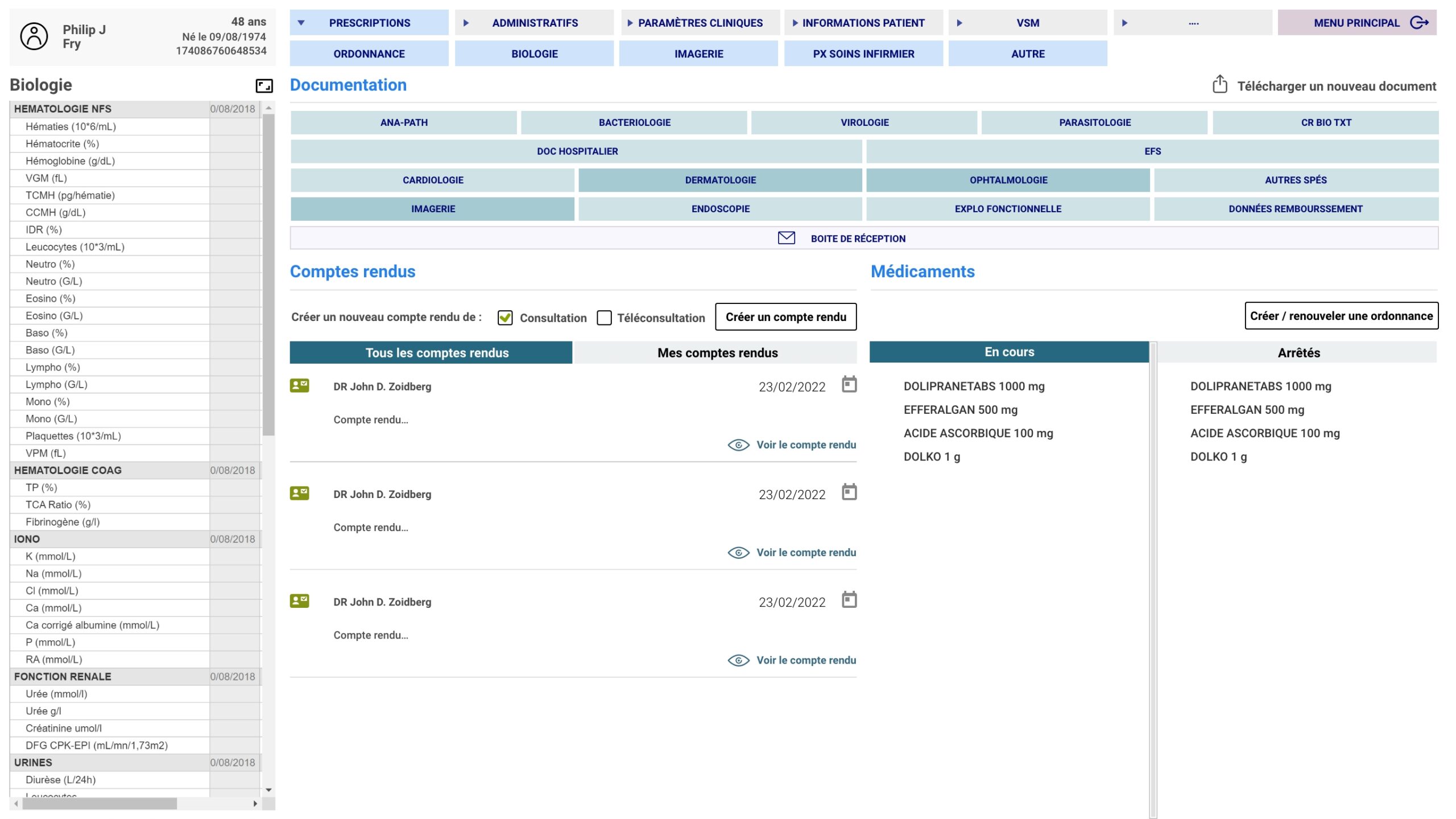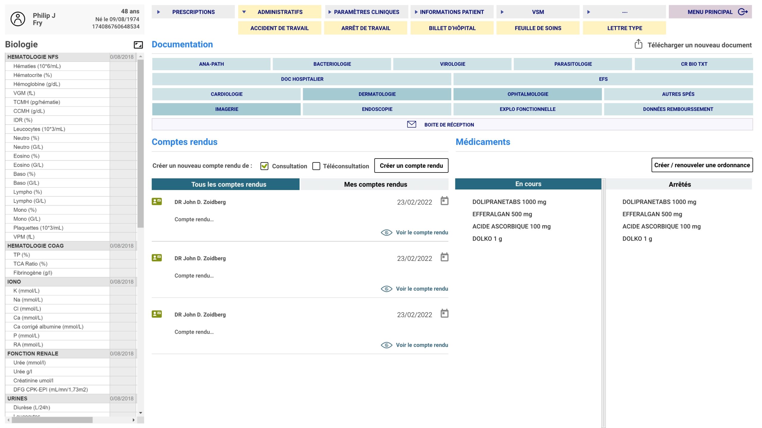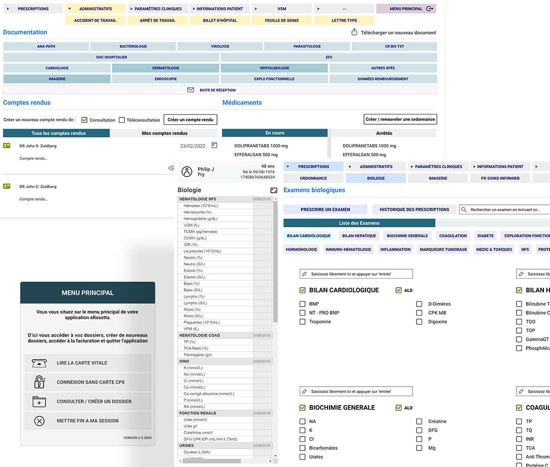 Cette approche a permis de réduire le nombre de clics nécessaires pour atteindre une information, tout en limitant les erreurs de parcours. Les sections ont été réorganisées pour mieux correspondre aux priorités du praticien, qu’il s’agisse de consulter un dossier patient, rédiger une ordonnance ou planifier un rendez-vous.