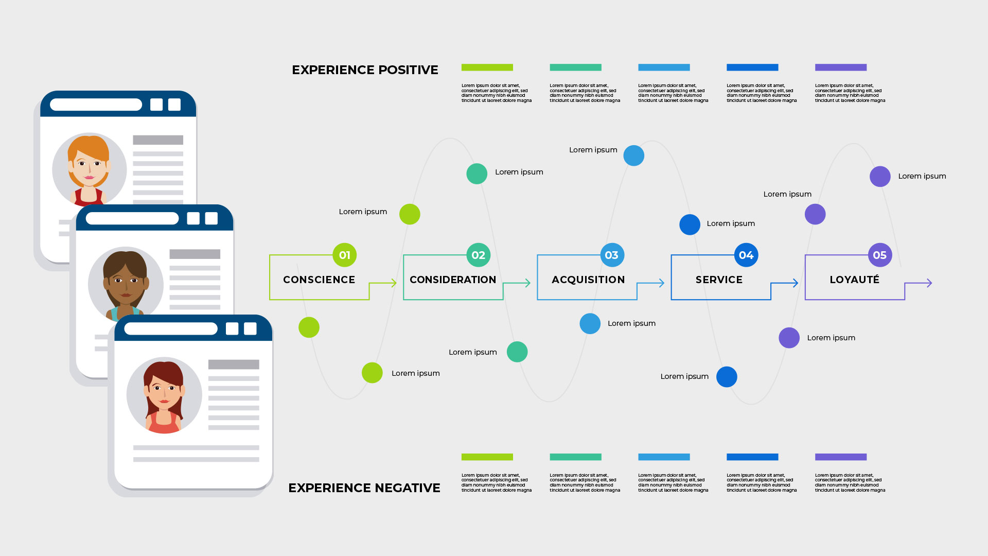 Nous créerons des personnages fictifs qui utilisent votre service afin d’identifier les différents points de contact et perfectionnerons leurs parcours pour les orienter plus facilement.